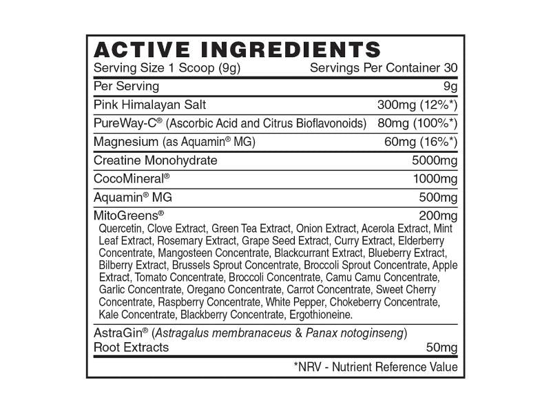 Crea-Greens® - Powered by MitoGreens®, Aquamin MG, Cocomineral®, AstraGin® and arguably the most researched, tested and proven supplement Creatine Monohydrate.