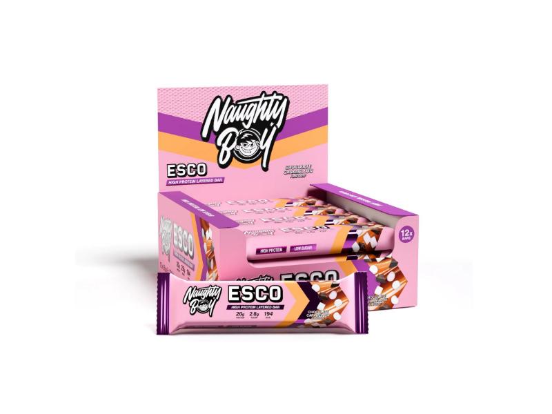 NaughtyBoy® ESCO® is a HIGH PROTEIN, LOW SUGAR layered protein bar that is perfect for on the go and maintaining a high protein diet.