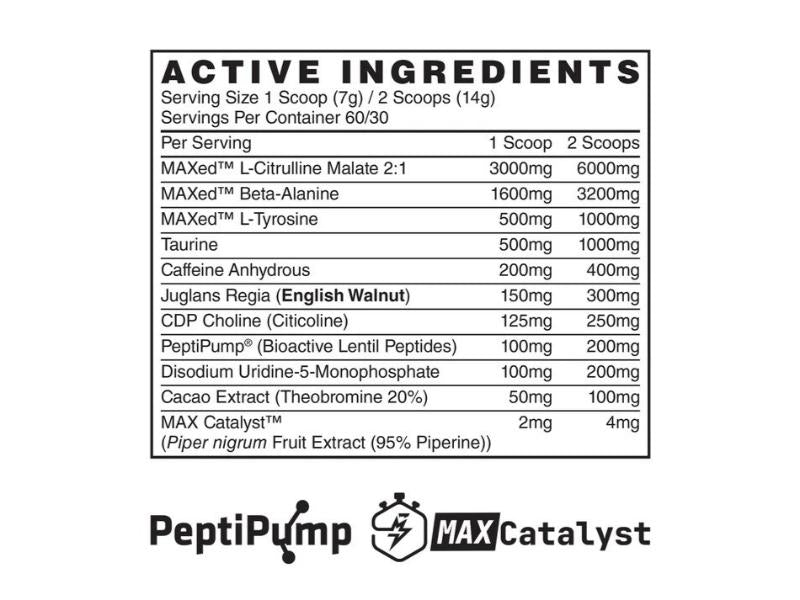 Mix 1 scoop (7g) or 2 scoops (14g) with 200-250ml of water or your preferred beverage. Start with 1 scoop to assess tolerance due to its high stimulant content. Consume before exercise on training days. Do not exceed 2 scoops within 24 hours.